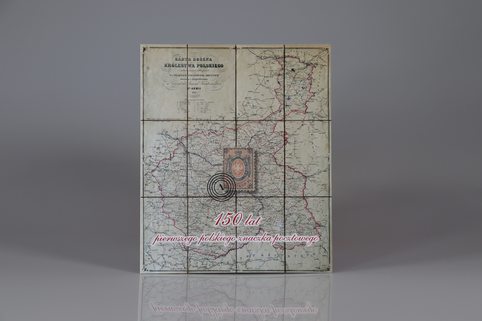 Katalog wystawy czasowej z okazji 150 lat pierwszego polskiego znaczka pocztowego.