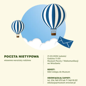 Wspólnie zwiedzimy naszą najnowszą wystawę czasową „Poczta nietypowa”, a na koniec, zainspirowani zaskakującymi sposobami dostarczania listów, stworzymy kolorowe modele balonów.